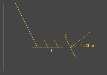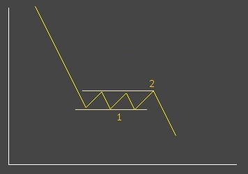 while in the direction of the trend (down in our case) the moment it continues in the direction of the trend (the sidewys movement was the