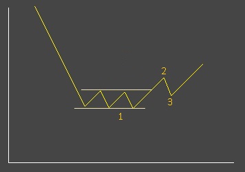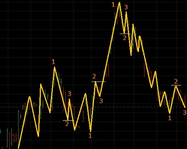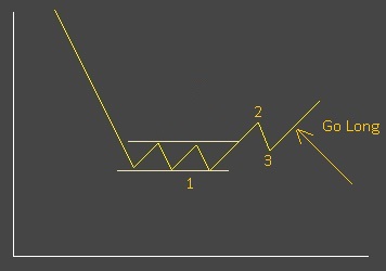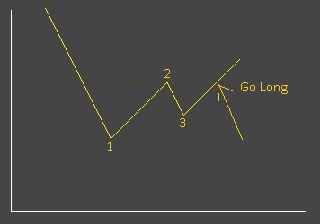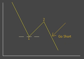 OK, the market has made its latest low - at point '1', then corrected to point '2' and it
