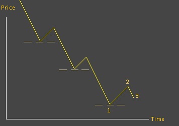 This is the third option. It goes down, but does not take out our point '1' low, in other words our