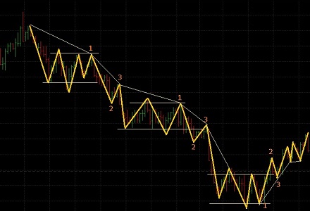 With the trend, every time it continues to move in the direction of the established trend, after a "sawtooth" correction