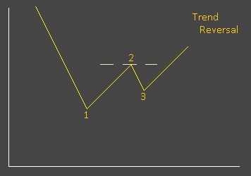 a new uptrend. (Of course it could from point '2' just go back down to point '1' and resume the up-down-up-down - in that case all that